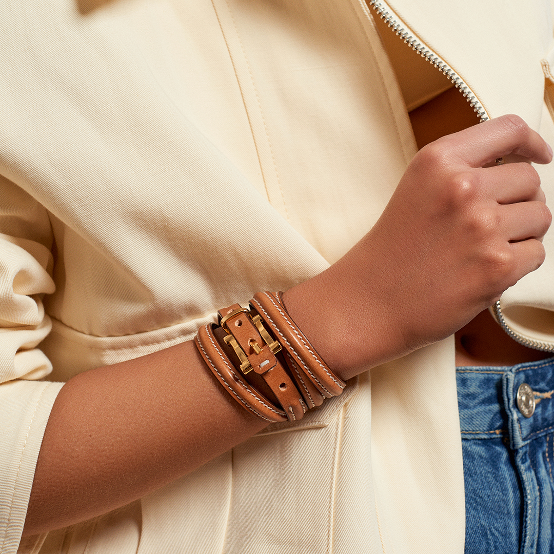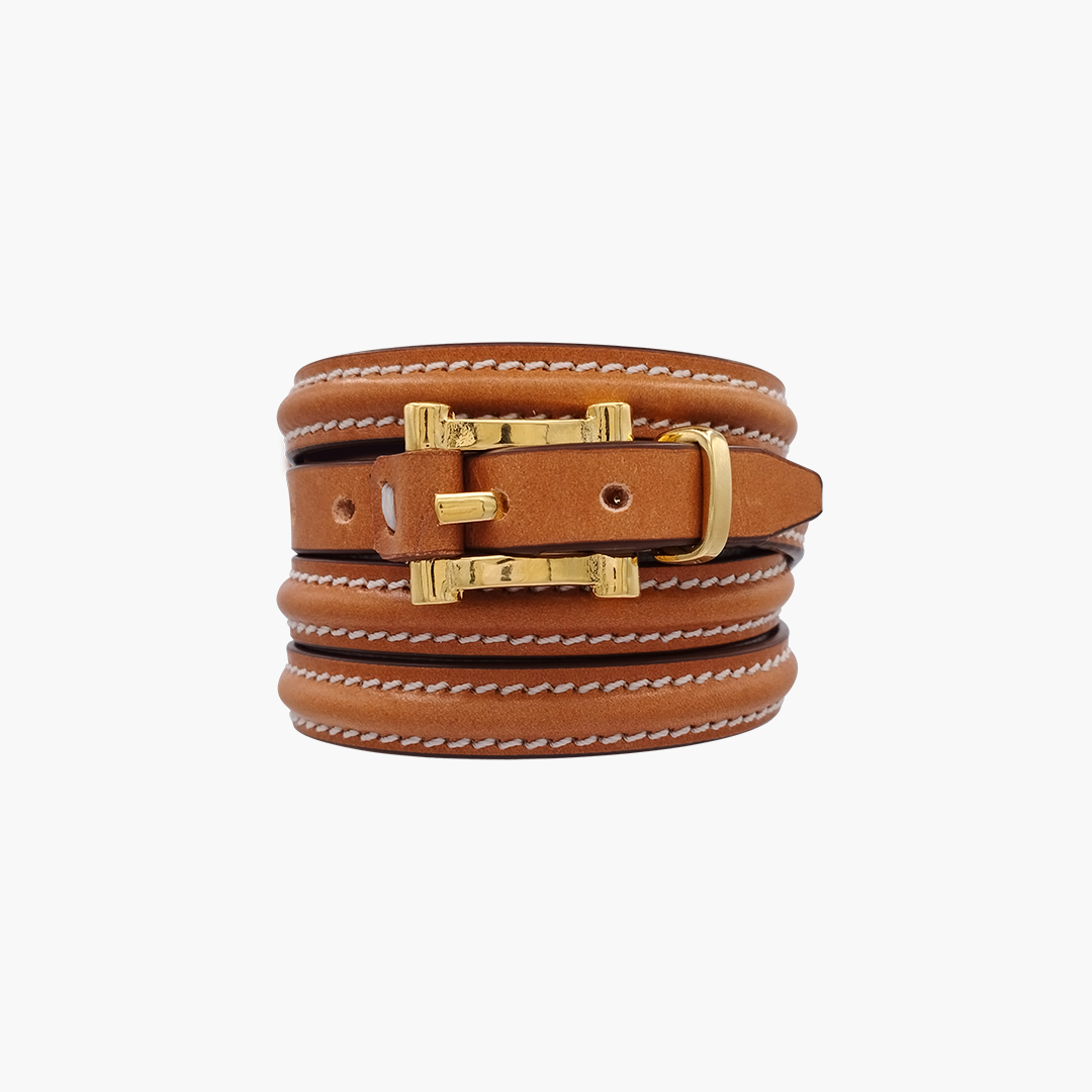 Bracelet with Camel Leather strap, rounded edges, dyed and polished