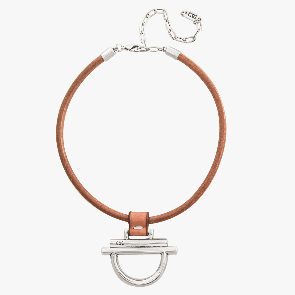 5mm diameter camel leather adjustable choker. It has a 12 cm extender chain.