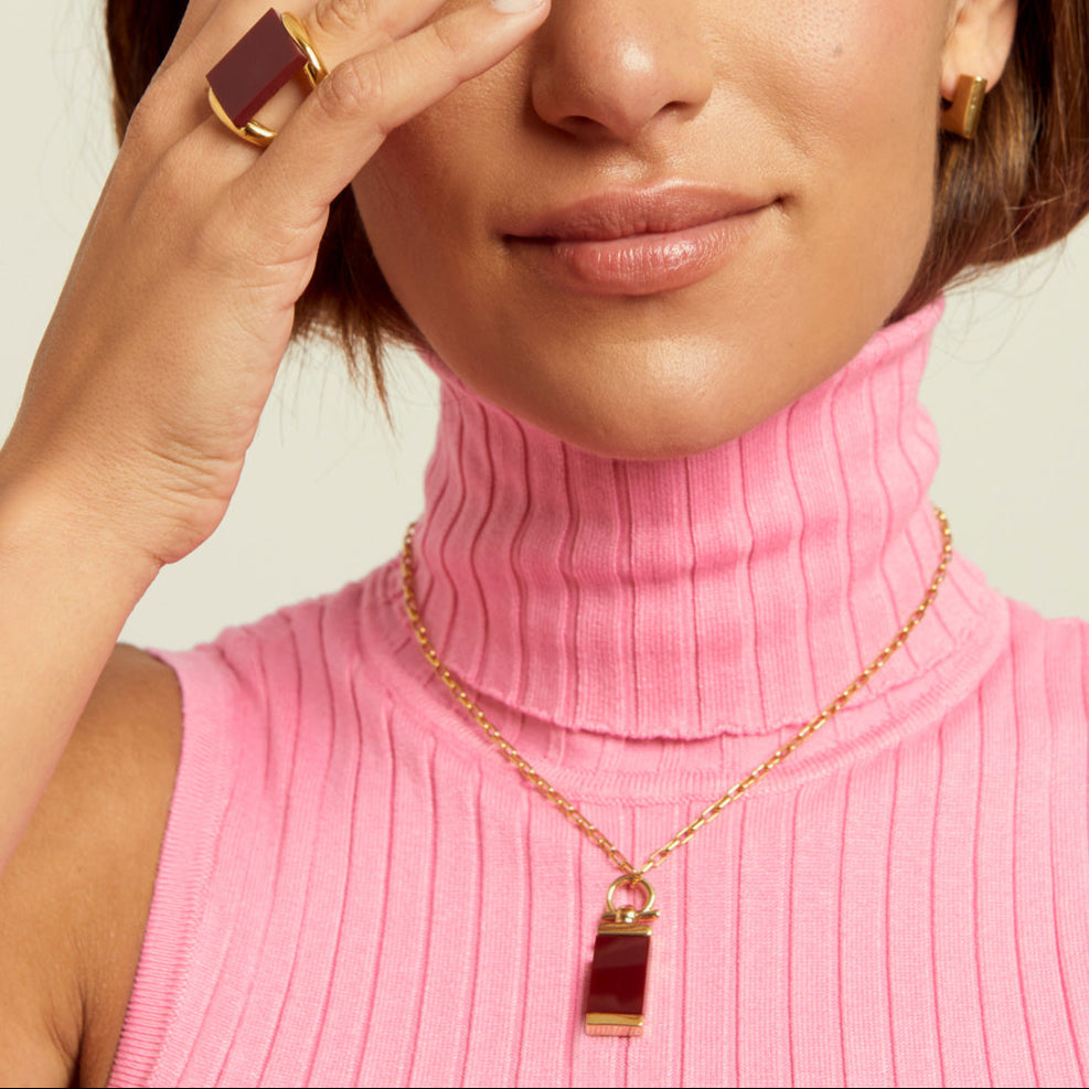 Adjustable necklace in various sizes. It has a burgundy methacrylate plate. Necklace weight: 14 gr.