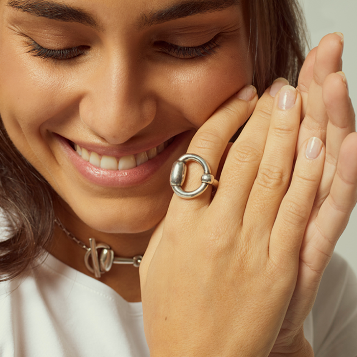Size L - Spain: Size 18 - Europe: Size 58 - USA: Size 8.5 - 18.5-19 mm approx. in diameter due to its special interior shape.