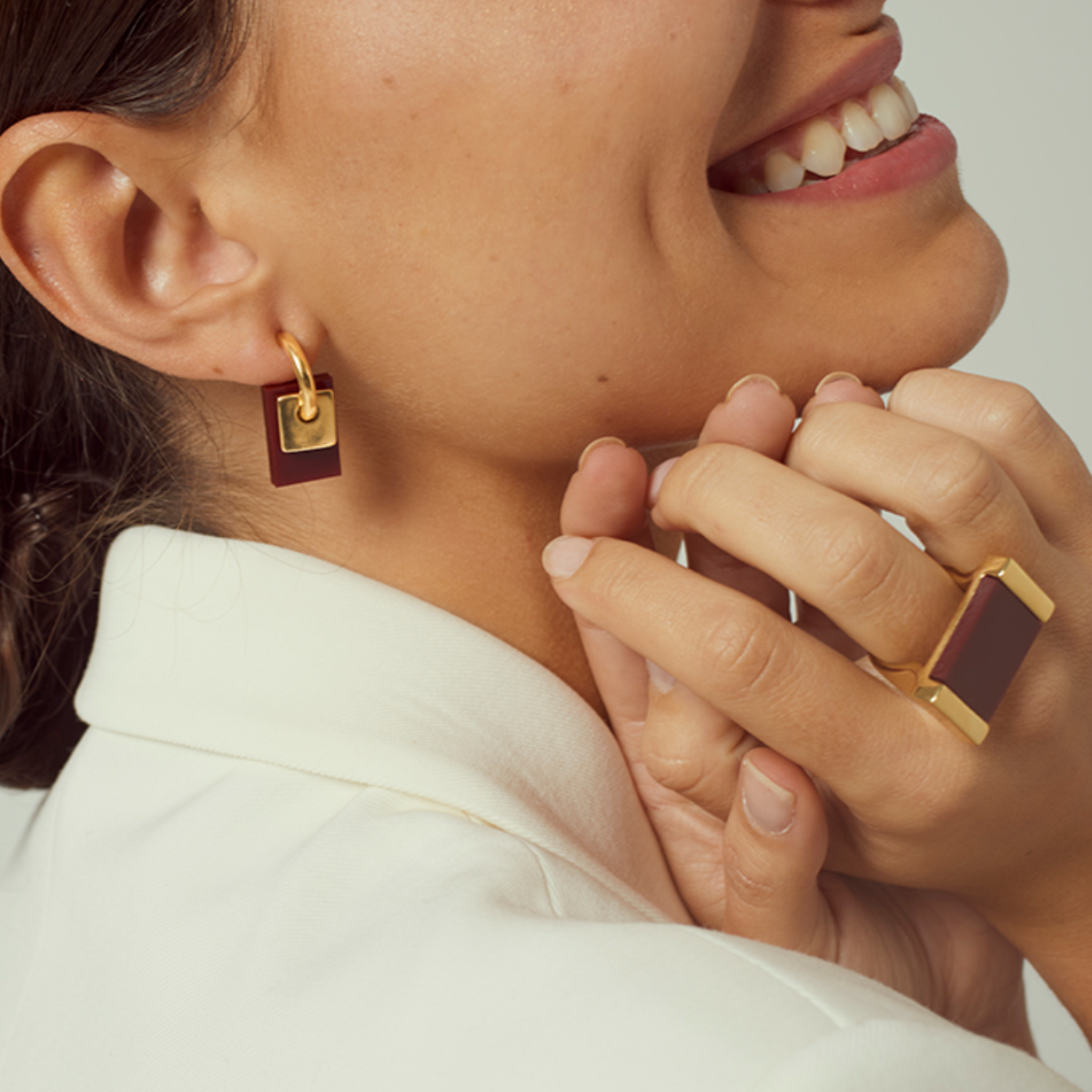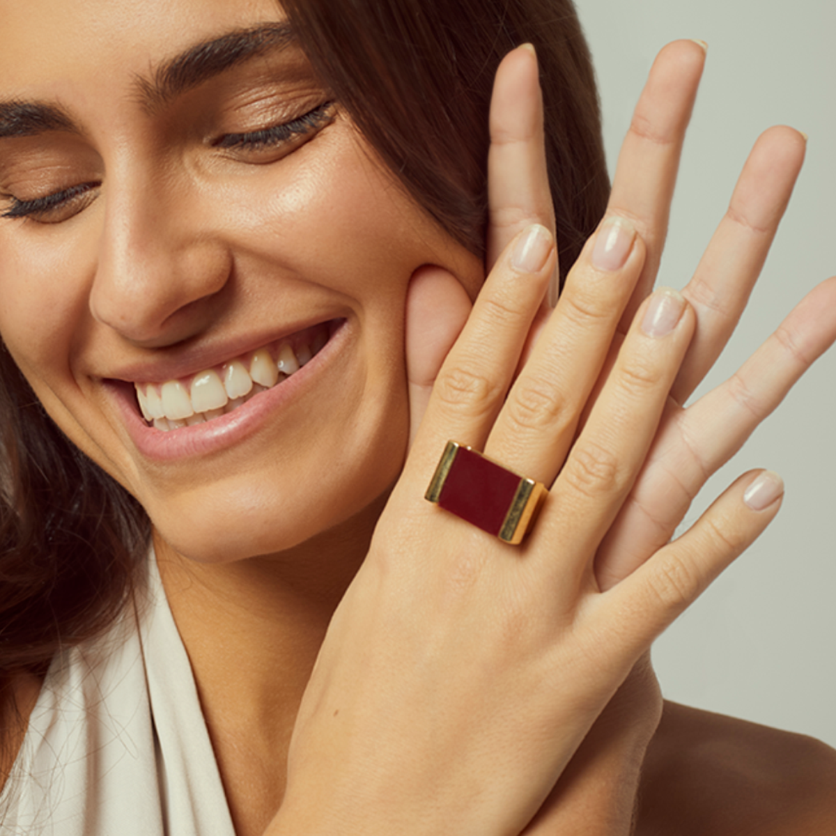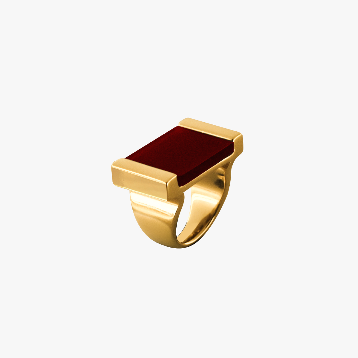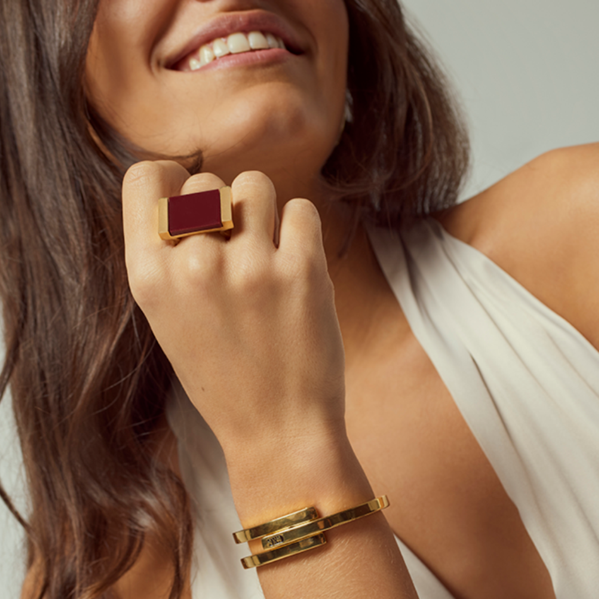Anillo de Latón bañado en Oro con incrustación de Metacrilato Burdeos