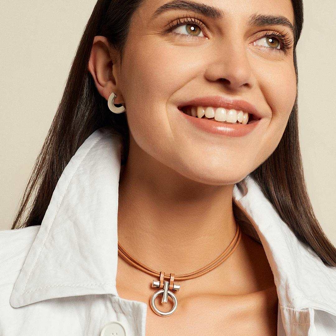 Talla: Ajustable al cuello desde 33 a 42 cm con colgante de 2 x 3 cm