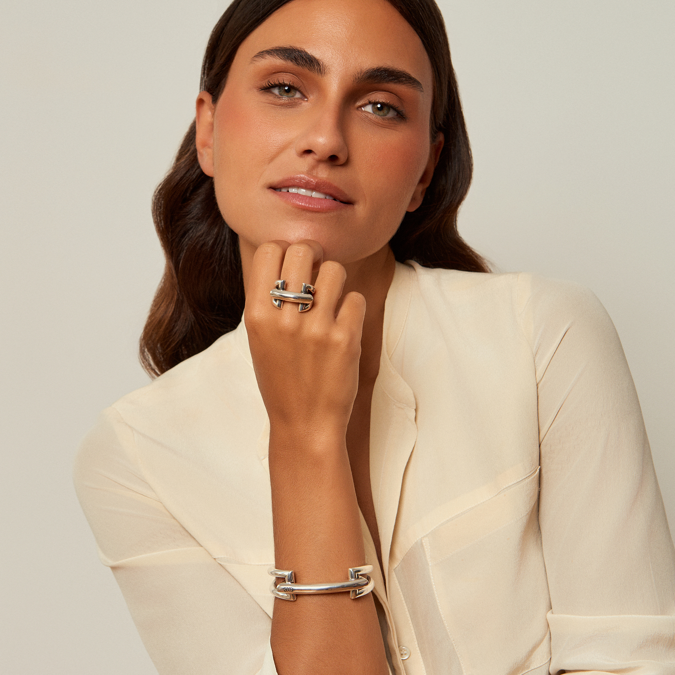 El protagonista de la colección es este anillo en forma de puente elevadizo y de latón bañado en plata. Diseño exclusivo de CXC, elaborado de manera artesanal en España.