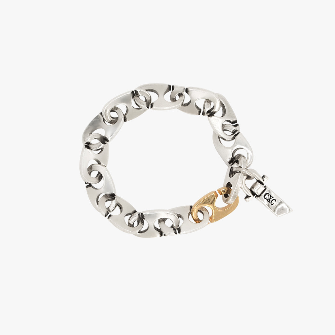 Pulsera Cadena Calabrote, una pieza de carácter audaz y elegante, inspirada en la conexión y la fuerza. Perfecta para destacar cualquier look con un toque de sofisticación.