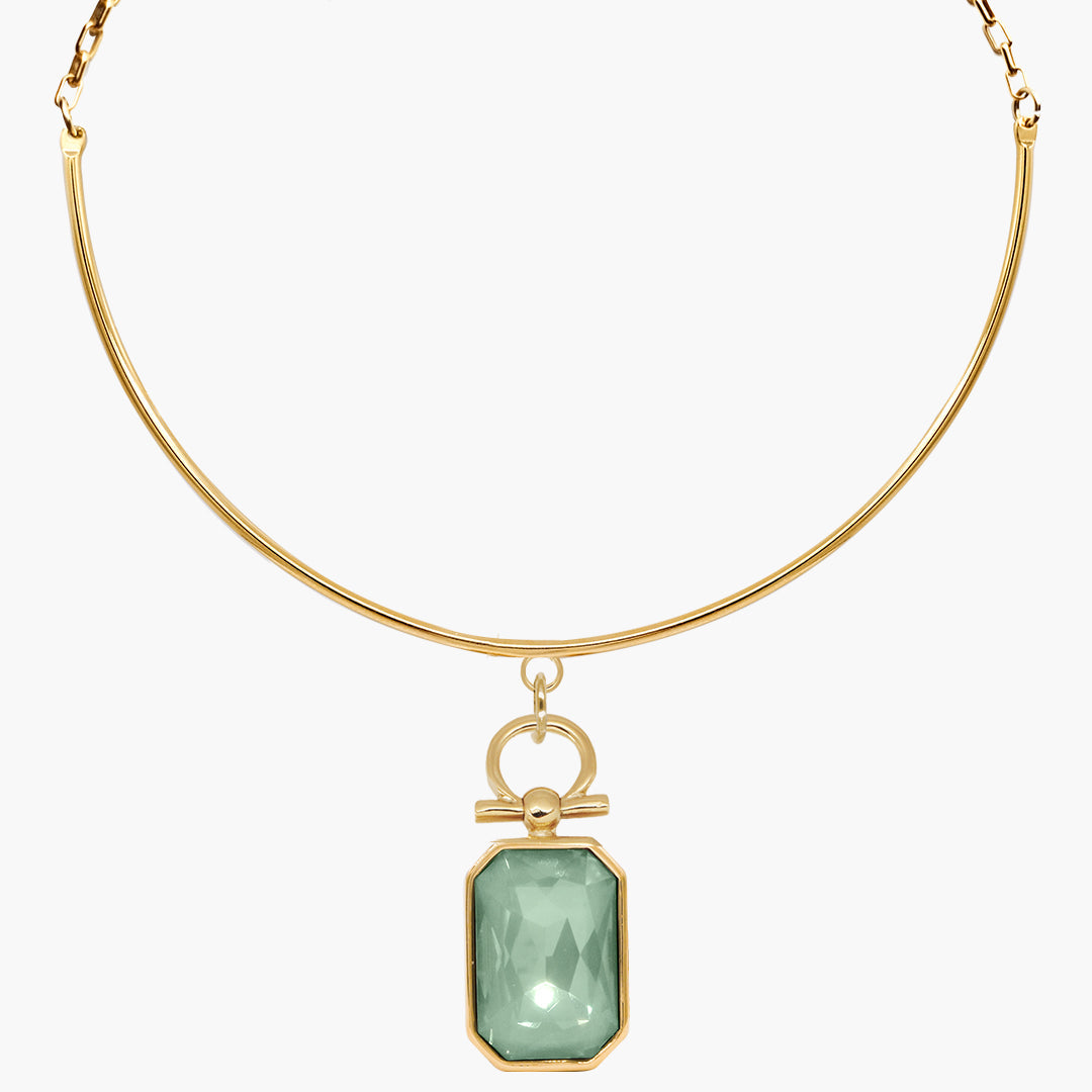 Tour de cou en métal argenté avec pierre Swarovski couleur agave.