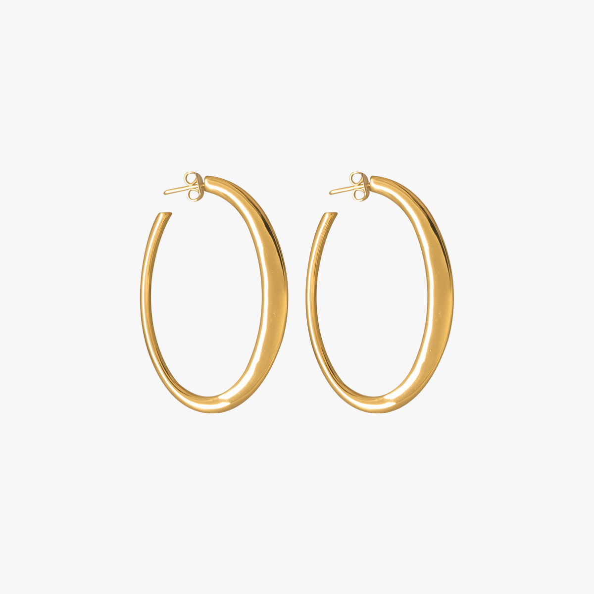 Boucles d'oreilles plaquées or. Longueur depuis le trou 5,5 cm. Poids environ : 7,3 grammes.