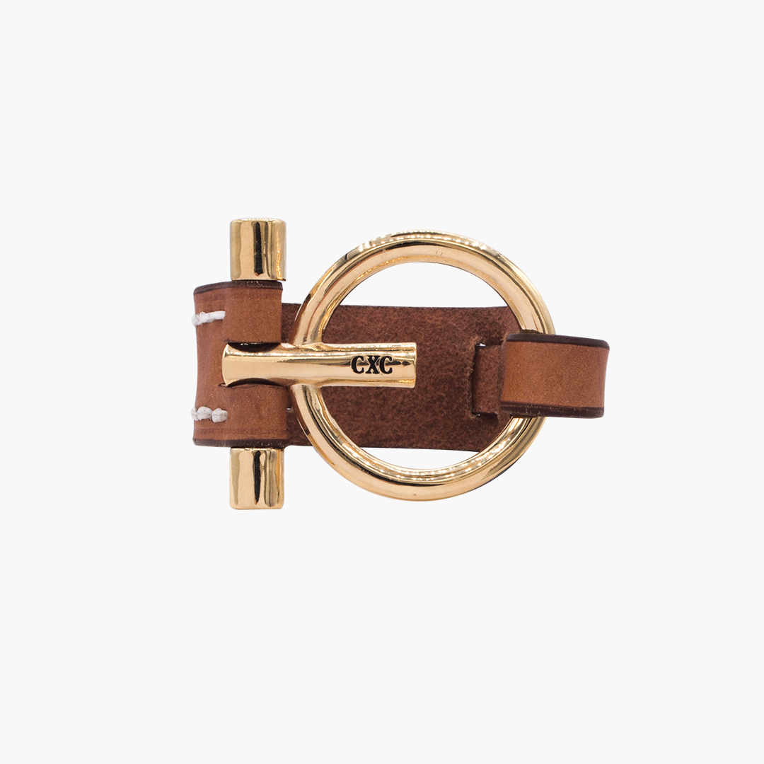 Bracelet en cuir de chameau, aux bords passe-partout et cousu main, teint et poli avec filet.