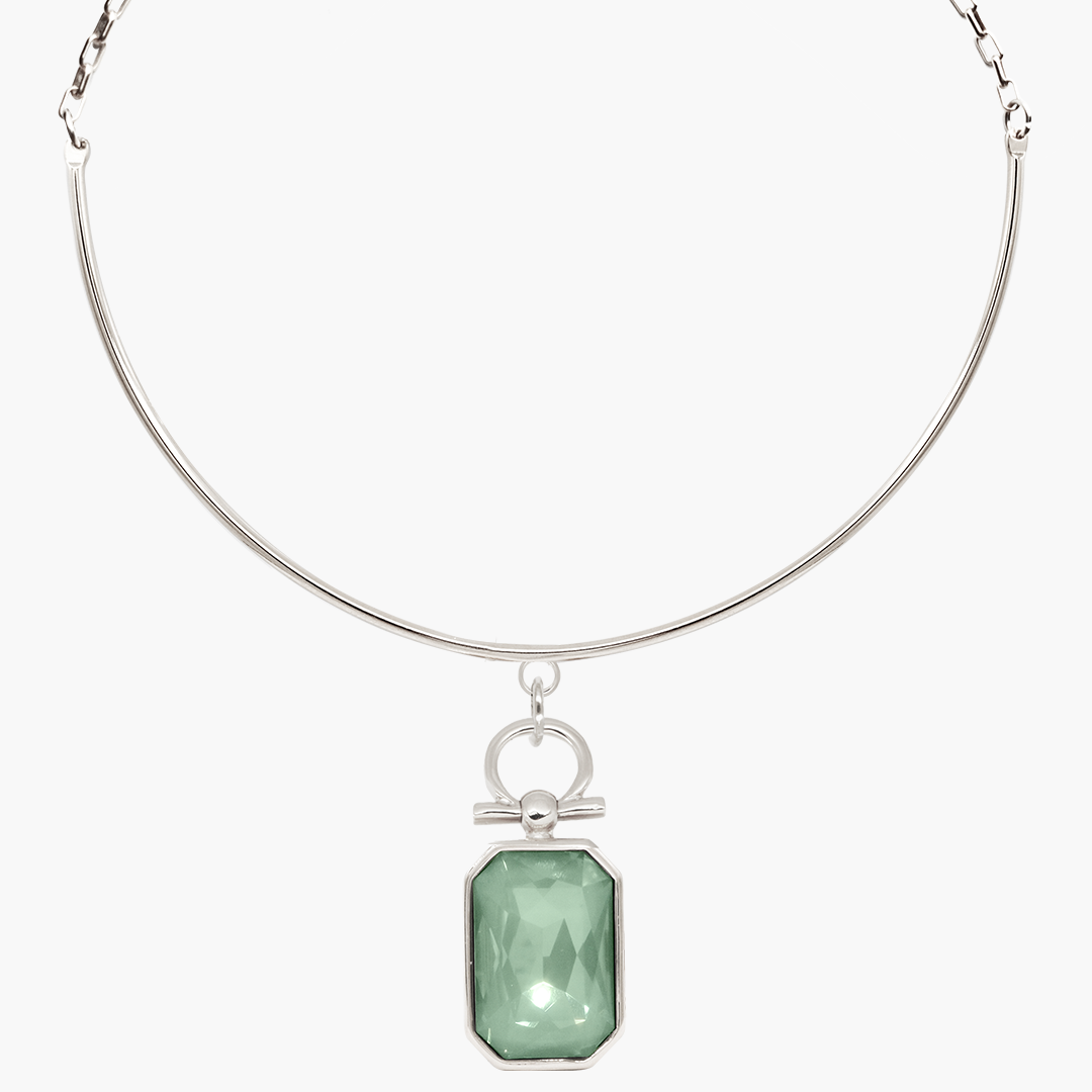 Tour de cou en métal argenté avec pierre Swarovski couleur agave.