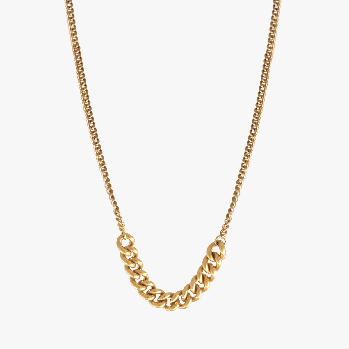 Collar formada con 2 medidas de cadena de latón bañada en Oro.