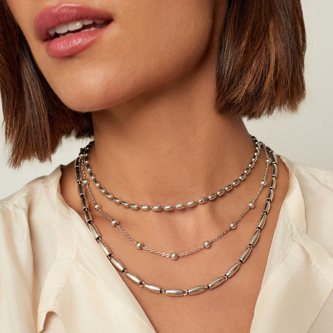 Colar Cadena Marisma: uma joia que evoca a beleza natural e a fluidez da água. Com seu design elegante e refinado, este colar é o complemento perfeito para adicionar um toque de frescor e sofisticação ao seu look.
